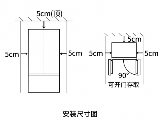 如果要選擇嵌入式冰箱,在裝修前期就應提前規劃,確定好冰箱擺放的大致位置并留好電源。冰箱的電源可以設置在背面或者側面的位置,高度一般在在30~150cm之間。設計櫥柜的時候,要精確測量冰箱預留位置的大小,一般的嵌入式冰箱建議左、右、上、后的預留不少于5cm。