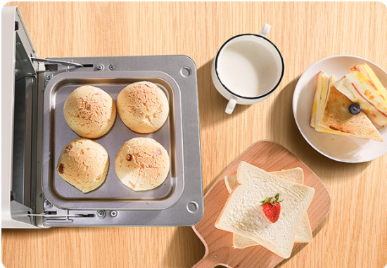 小貝烤啦烤箱上下石英管同時發熱,內腔形成上下熱循環,實現恒溫烘烤,保證食材烘烤過程中的一致口感。你想做的,小貝烤啦都烤得出來——烤雞翅20min、烤吐司3 min、烤蛋撻20 min、芝士煸蝦10 min、烤紅薯30 min、懶人披薩15 min,一切都輕輕松松。