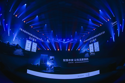 - 2021年4月25日,以“智慧衣食 讓生活更美的 ”為主題的美的冰箱·洗衣機智慧新品戰略發布會直播上線,會上美的著重推出了以“微晶|冰釉藍&