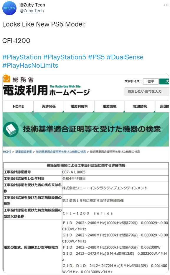 - 5月12日消息,國外爆料者@Zuby_Tech最近爆料了有關于PS5新版的最新消息,消息顯示新版本的PS5機型已經在日本注冊了,其代號為CFI-1200?! ∶襟wDigiTimes此前曾發過一