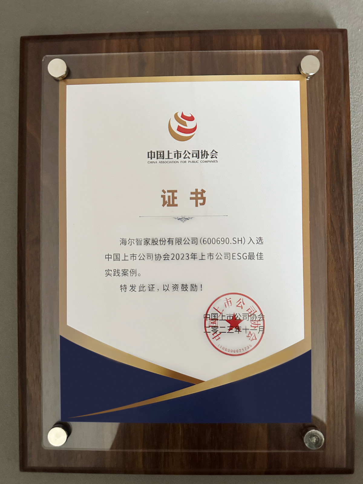 - 海爾智家入選“2023年上市公司ESG最佳實踐案例”