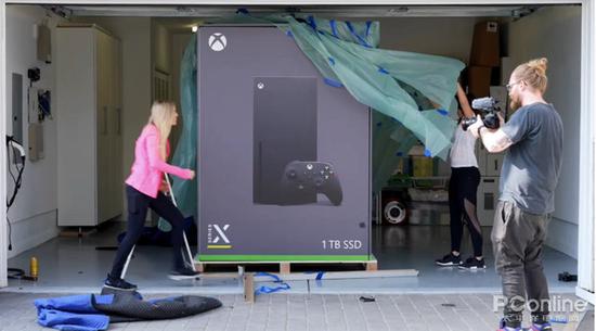 甚至在Xbox Series X/S主機發售前夕,微軟真的造出了一個真人大小的XSX造型冰箱,又能成功收割一波熱度。當時,坐擁百萬粉絲的女主播iJustine還特定搞了開箱,引發一陣轟動。通過開箱視頻,我們可以看到這個冰箱真的是完全還原了Xbox Series X主機的造型:前面有Xbox的logo,通上電之后logo變亮。甚至,當你打開冰箱門之后,會聽到標志性的XSX開機聲。打開之后,內部亮的燈也是Xbox標志性的綠色。但這個XSX冰箱它太大了,以至于視頻中的國外博主iJustine都關不上車庫的門。