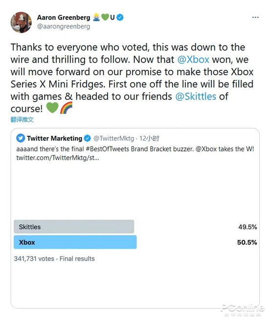 Aaron Greenberg在推文中表示:非常感謝大家的投票,現在Xbox已經贏得推特最具影響力品牌投票,我們決定履行諾言,將正式投產“Xbox Series X迷你冰箱”。顯然,迷你冰箱比此前2米多高的單開門冰箱制造難度要低得多,價格也可以做到多數人接受,喜歡的朋友不妨耐心等待微軟履行諾言吧。