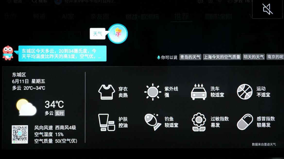 當然,作為璀璨全場景套系家電的有機一環,海信璀璨C1P激光電視可以通過遠/近場語音對套系家電進行控制。語音識別支持自然對話,不用冷冰冰的說出固定關鍵字,只需要告訴海信小聚“聲音太大了”“我有點冷”,它就能對電視音量以及空調溫度進行調節,配合攝像頭,還可以實現對家庭環境的監控。