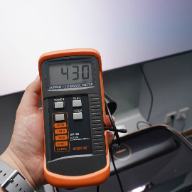 亮度部分,激光電視雖屬于投影,但由于配套幕布的存在,我們才用傳統電視的尼特而非流明作為測試標準。實際測試,海信璀璨C1P激光電視峰值亮度430尼特,HDR視頻實際畫面測得可達到334尼特,在室內明亮環境下也可以呈現出幾近真實的畫面效果。