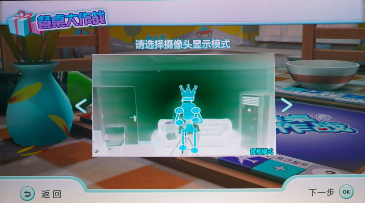 AI攝像頭還支持體感游戲,值得一提的是,攝像頭可以開啟夜視模式,游戲時不必擔心打擾到老人和孩子的休息。