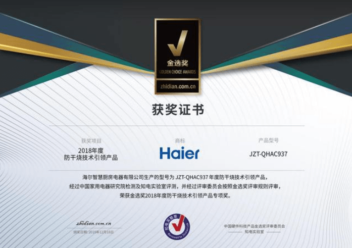 正因滿足了用戶的廚房安全需求,海爾燃氣灶頻頻收獲行業認可。
