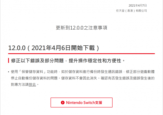 故事要從前天,也就是4月6日說起。當天,任天堂為Switch主機推送了12.0.0版本固件。