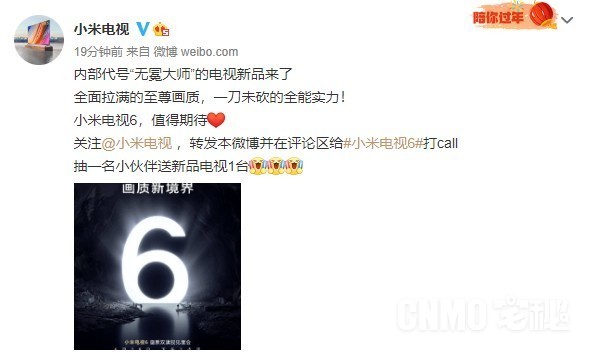 小米電視6官宣:6月28日下午見 “畫質拉滿 一刀未砍”