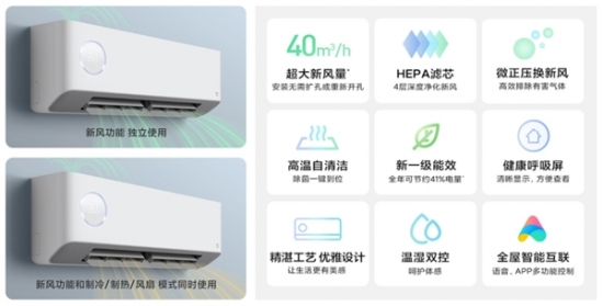 面對市場環境與消費者購買需求的雙重轉變,京東家電和小米從人們對空調的使用痛點出發,針對“空調房呆久了感覺憋悶”、“沙塵天氣怎么開窗通風”、“長時間吹空調皮膚干燥”等問題,進行產品功能的創新研發,進而推出了米家新風空調新品。據了解,此款產品采用小米新一代雙混動新風系統,自研離心渦輪增壓技術,將室內外空氣深度凈化,再通過二次增壓釋放新風。同時結合自研新風系統技術,用戶無需擴孔或重新開孔,即可實現40m³/h大新風量,高效稀釋室內有害氣體,讓空氣快速流通,用實時換新的潔凈含氧空氣解決密閉空調房不通風的憋悶問題。