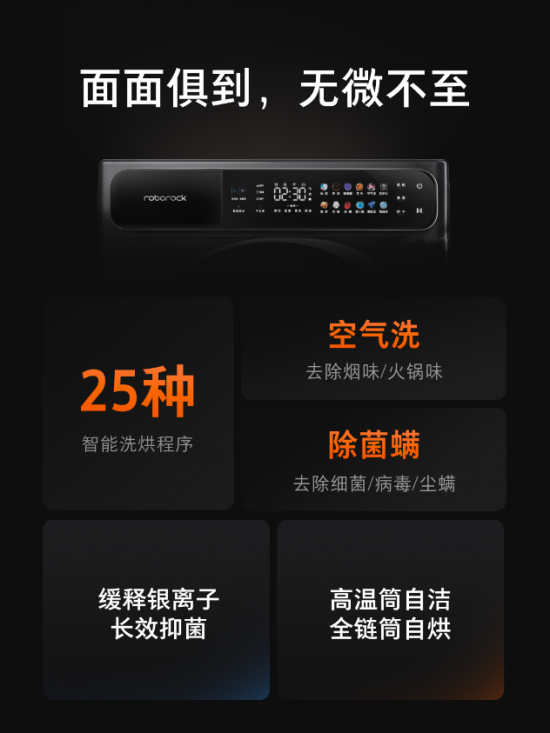 石頭H1采用RR洗烘算法,融合多個NTC智能傳感器,能夠實現10毫秒級精準控溫,提供25種智能洗烘模式,針對不同的材質,給出定制化的洗護解決方案。而且,還自研了毛絮過濾自清潔系統,將毛絮自動收集到濾網上后自動沖洗。
