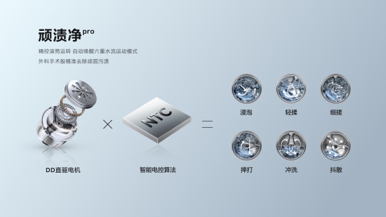 為了百分百發揮超級筒的強勁實力,徹底消滅每一處頑固污漬,TCL超級筒洗衣機還全系標配頑漬凈pro技術。機上配置48組磁極DD直驅電機,精準控制洗衣機滾筒的啟停、加速變速、正反轉向和大小力度。同時工程師們經過成百上千次測試,研發了“六重水流運動模式”,即通過控制水流,實現浸泡、輕揉、細搓、摔打、沖洗、抖散六種不同的洗滌模塊。無論何種頑漬,用戶只需要選擇對應的按鍵,TCL超級筒洗衣機即自動采取針對性的洗滌方式,進行“外科手術級”清洗,精準打擊頑漬。