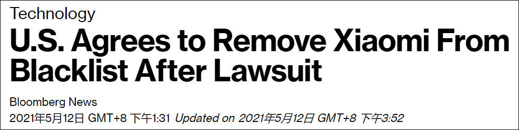 彭博社報道指出,小米與美國國防部達成和解協議,標志著中國科技企業在與美國政府的交鋒中獲得“罕見的勝利”(rare victory),因為中美兩國在貿易、人權、香港等問題上存在不少分歧。