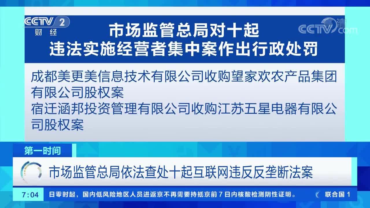 [第一時間]市場監管總局依法查處十起互聯網違反反壟斷法案