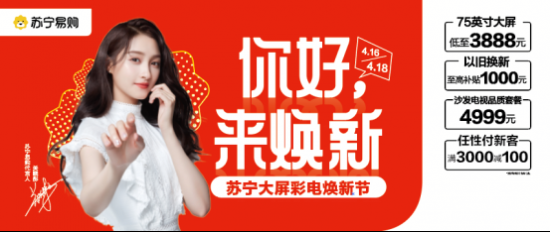 據了解,清明假期之后蘇寧易購電器購物節全面啟動,蘇寧家電將加碼在線上線下雙渠道推出家電拖舊送新一步到位、換新享補貼特色服務,涵蓋空調、冰箱、洗衣機、彩電、廚衛電器多品類,補貼額度至高可達1000元。同時蘇寧易購還通過滿減、送贈、套購返利等形式讓利消費者, 推出75吋大屏彩電低至3888元、爆款電器5折搶等眾多福利。