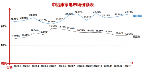 2021年1月,海爾智家以24.19%份額位居行業(yè)第一,繼續(xù)領(lǐng)跑。