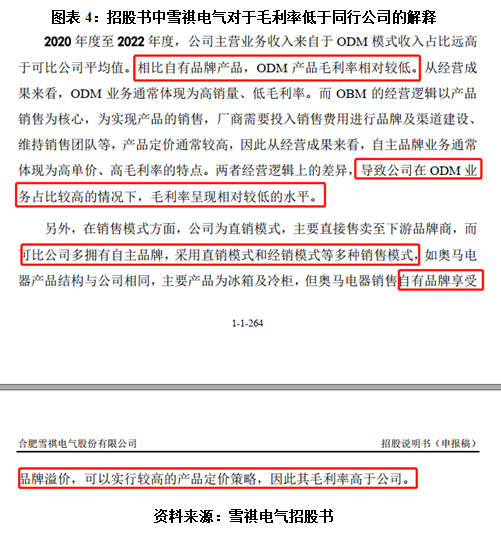 與自有品牌產品能夠享受品牌溢價不同,ODM(原始設計制造商)業務通常體現為高銷量、低毛利率的特點,因此ODM產品毛利率相對較低。而多年來,雪祺電氣缺乏自主品牌,報告期內ODM業務占比為100%,以代工業務維持經營,故導致毛利率偏低。