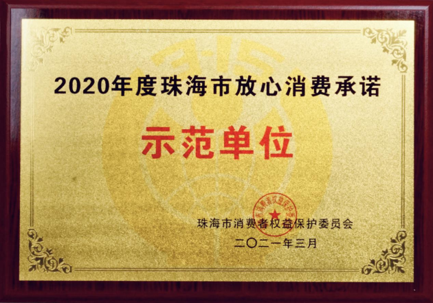 (雙喜電器榮獲“2020年度珠海市放心消費承諾示范單位”)