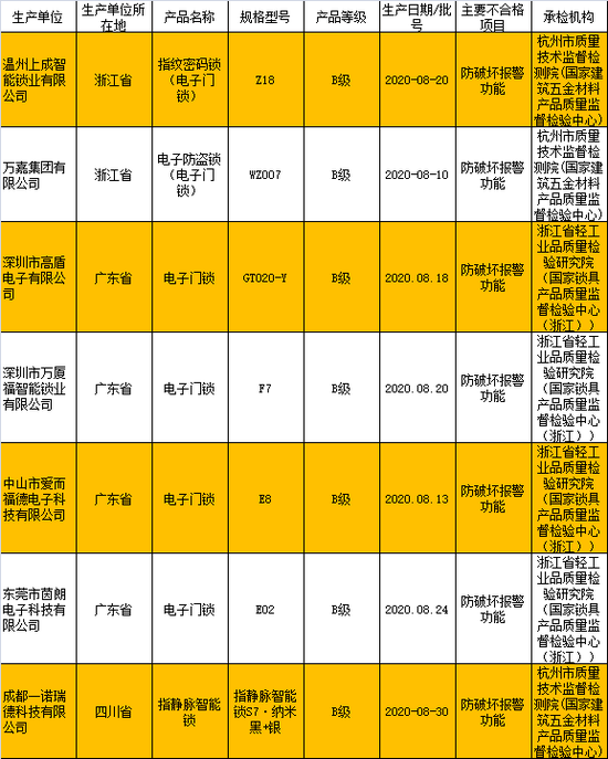 在對于電子門鎖的檢查中,監管部門抽查了4個省(市)60家企業生產的60批次產品,其中7批次產品不合格,不合格發現率為11.7%。經檢測,包括萬嘉集團有限公司生產的WZ007型號電子防盜鎖在內的7批次產品均發現防破壞報警功能。據了解,防破壞報警功能不合格的產品在入侵者采用假指紋頭、密碼試錯的破解方式和破壞拆卸外面板的暴力破壞方式時,無法起到威懾入侵者和提醒周邊鄰居及屋主的作用。