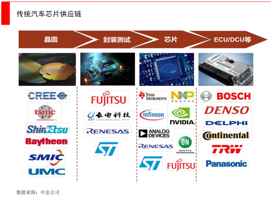 在分析汽車電動化和智能化所帶來的顛覆之前,我們先來看看汽車芯片產(chǎn)業(yè)鏈是如何運作的。
