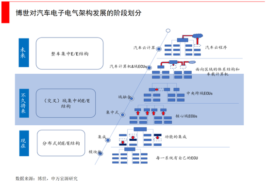 在我們?nèi)ツ?1月的研報《除了理想和小鵬,我們持續(xù)重倉智能電動車產(chǎn)業(yè)鏈》中,我們詳細分析了智能電動車的底層變革——采用新的電子電氣架構(gòu),在此不再過多贅述。