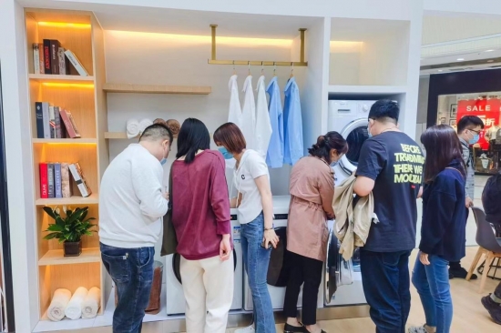 以用戶需求為中心,從用戶的實際生活應用出發,惠而浦進行營銷場景的升級,通過門店的多場景體驗與用戶產生“共情”,例如洗衣機產品結合洗漱臺、晾衣架等元素,模擬用戶家庭陽臺場景,打造洗烘一體機疊放樣板,讓更多消費者在體驗洗衣機“智氧除菌”、“頑漬凈”等優質性能的同時,可以同步體驗干衣機衣干即停、即干即穿的高品質健康生活。