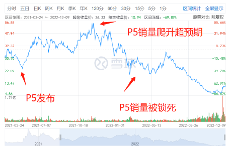 如果單論智能化程度,P5比埃安多了L2級別的輔助駕駛,比秦多了自動變道和自動泊車。那么多花2萬塊錢買這些功能值不值?消費者自然會用腳投票。按2022年11月的銷量來看,秦 PLUS EV銷量為12870,埃安S銷量為15323,小鵬P5僅為1453輛。