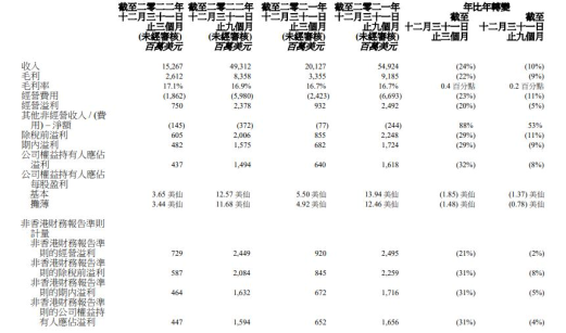 據聯想集團近期發布財報數據,2022年第三財季(2022 年 10-12 月)業績,聯想營收152.67億美元,低于市場預估的163.6億美元,同比2021年同期的201.27億美元,下滑了24%。季度凈利潤為4.37億美元,2021年同期是6.4億美元,同樣出現32%的下滑,單季度的業績營收和凈利潤雙降。而在此前的三個季度,聯想的營收和凈利潤同樣都是雙降。