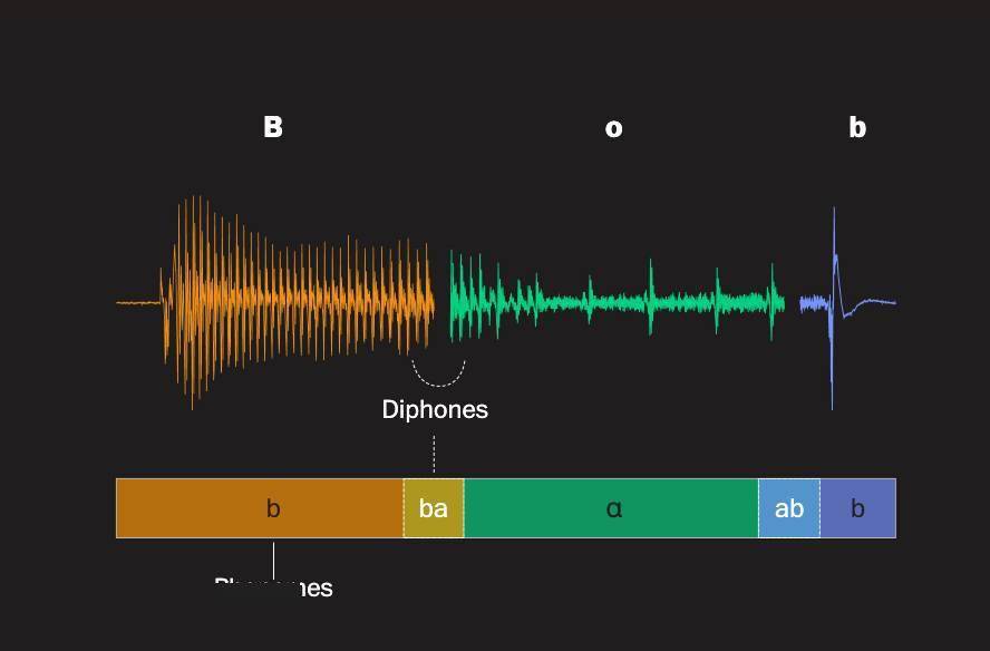 ▲單元選擇技術(shù)下,「Bob」這一詞語能被拆分成不同語音元素,圖自《華盛頓郵報(bào)》