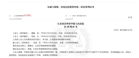 裁判文書網顯示,吳誠與蔣維、馮璽存在一起民間借貸糾紛,蔣維、馮璽為夫妻。2014年,蔣維向吳誠出具一份1250萬元的借條,吳誠以此要求蔣維還錢。但蔣維卻聲稱,該借條是吳誠采用欺騙的手法讓自己出具的。雙方的銀行流水,均系雙方生意往來(含澳門賭博生意),并無借貸流水。