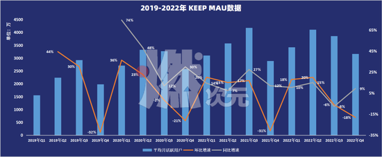 從2021年和2022年數(shù)據(jù)也不難看出,Keep的用戶(hù)數(shù)據(jù)雖有增長(zhǎng),但增長(zhǎng)依舊處于較平緩狀態(tài),且在個(gè)別季度還有倒退現(xiàn)象。