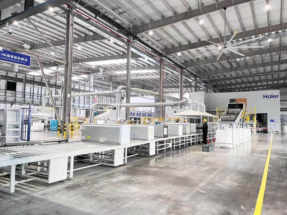 在產(chǎn)業(yè)綠色化上,海爾智家在青島萊西打造了行業(yè)首座融合“回收-拆解-再生-再制造”為一體的再循環(huán)互聯(lián)工廠。從全國各地回收的家電,在這里通過全流程可視化、規(guī)范化的精細(xì)拆解、破碎清洗、塑料造粒,最終生成高品質(zhì)的循環(huán)新材料。而這些再生材料純度高達(dá)99%,純度行業(yè)最高,堪比原生材料,可用于家電、汽車、日化,甚至食品級塑料等領(lǐng)域。目前,該工廠每年可實(shí)現(xiàn)廢舊家電拆解200萬臺,循環(huán)材料再生3萬噸。
