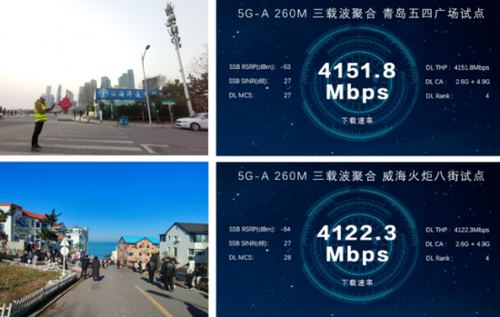 山東移動(dòng)5G-A三載波聚合試點(diǎn)選址青島五四廣場(chǎng)、威?;鹁姘私謨纱鬅衢T旅游景區(qū)。通過(guò)在現(xiàn)網(wǎng)2.6G站點(diǎn)基礎(chǔ)上增加4.9G宏站部署,實(shí)現(xiàn)260M可用超大帶寬?,F(xiàn)網(wǎng)實(shí)測(cè)數(shù)據(jù)顯示,青島、威海兩地下行峰值速率分別可達(dá)4151.8Mbps和4122.3Mbps,相較傳統(tǒng)5G網(wǎng)絡(luò)提升顯著。這是5G-A三載波聚合技術(shù)在文旅領(lǐng)域的全新應(yīng)用,邁出了5G-A助力智慧景區(qū)打造的一大步。