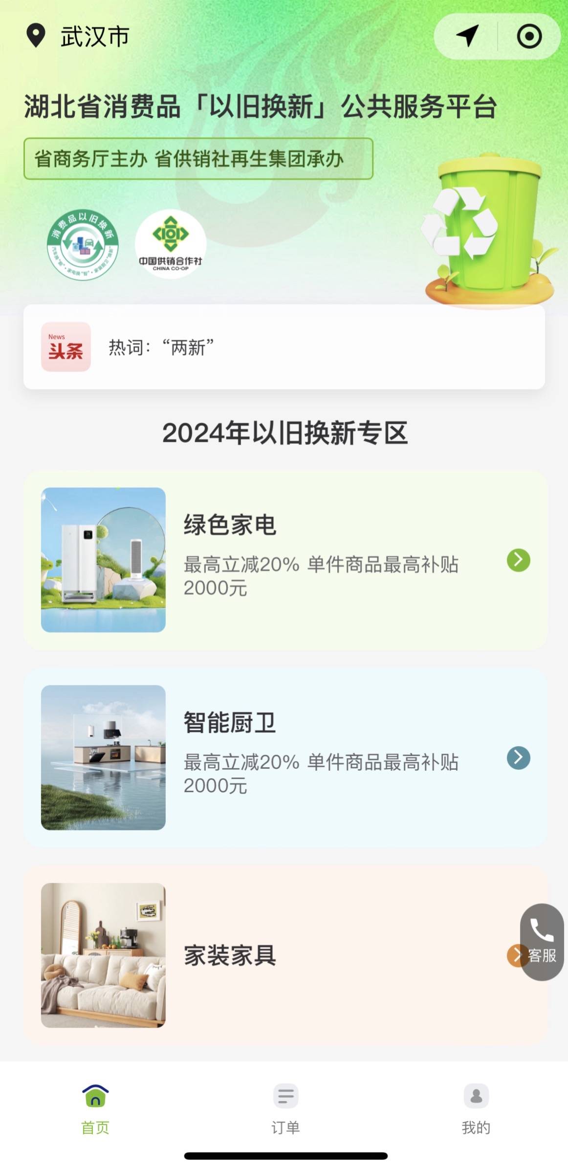 省內(nèi)個(gè)人消費(fèi)者登錄“湖北供銷回收”微信小程序,進(jìn)入“2024以舊換新專區(qū)”綠色家電欄目,選擇“先購(gòu)新再守舊”或“先收舊再購(gòu)新”補(bǔ)貼方式;