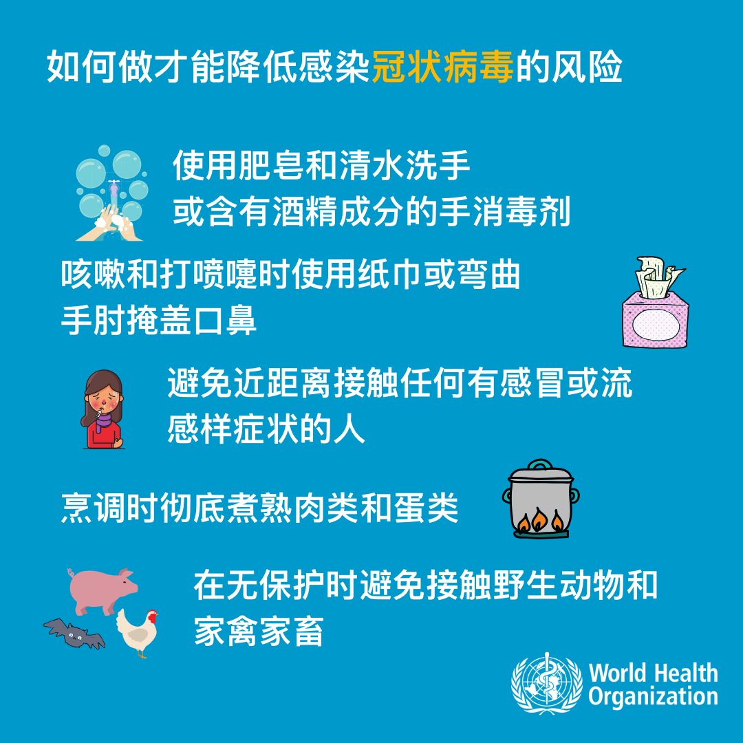 以下是 WHO 推薦的新型冠狀病毒的防護小貼士: