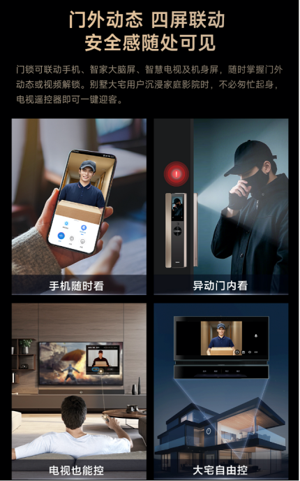 它的可視對講功能也極其便捷,訪客按鈴時,高清畫面可同時推送到手機、電視及門鎖屏幕上,讓你無論在家中何處都能實時對講,無需匆忙應門。而臨門語音提醒更是貼心,鎖門時自動播報天氣或節日提醒,還支持錄制家庭留言,讓每次出門和回家都多了一份溫暖與關懷。