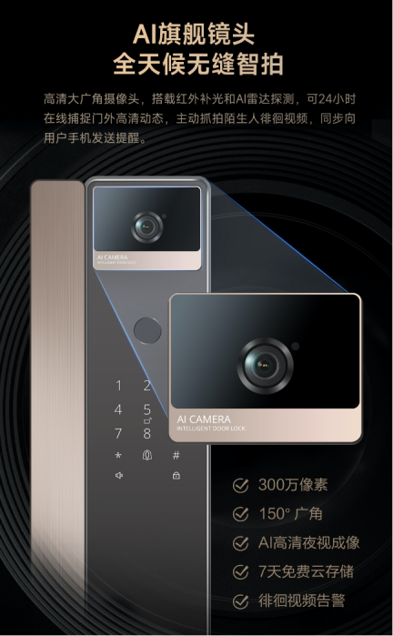 值得一提的是,海爾金吾衛S900采用了150°超廣角視野。站在門前,基本能看清從腳到頭甚至門外走廊兩側的情況,高清畫質在白天和夜晚都清晰可辨。最令人安心的是它的緊急情況電話告警功能,一旦檢測到異常逗留或暴力撬鎖,能及時通知,安全感爆棚!